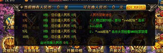 3.大boss死亡后,会掉落宝箱和rmb,宝箱和rmb都设有倒计时,当倒计时结束时奖励在谁头上则归该玩家所有。