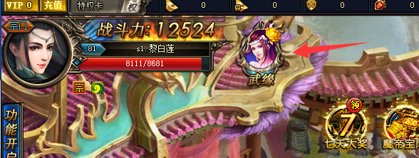 2.当玩家完成48级主级任务后开启【武缘】功能,【武缘】位置在角色UI左则上方。
