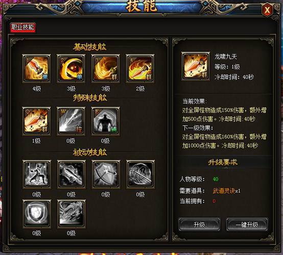 达到一定等级方能激活,不同的技能升级需要消耗对应物品,点击技能图标可以查看。